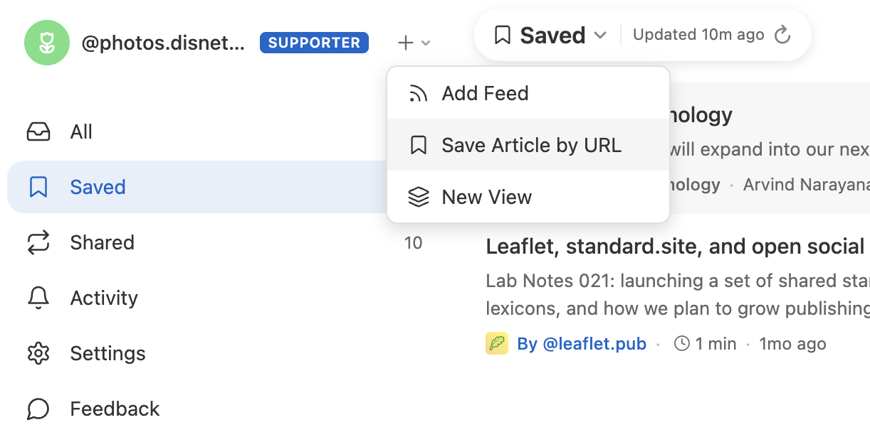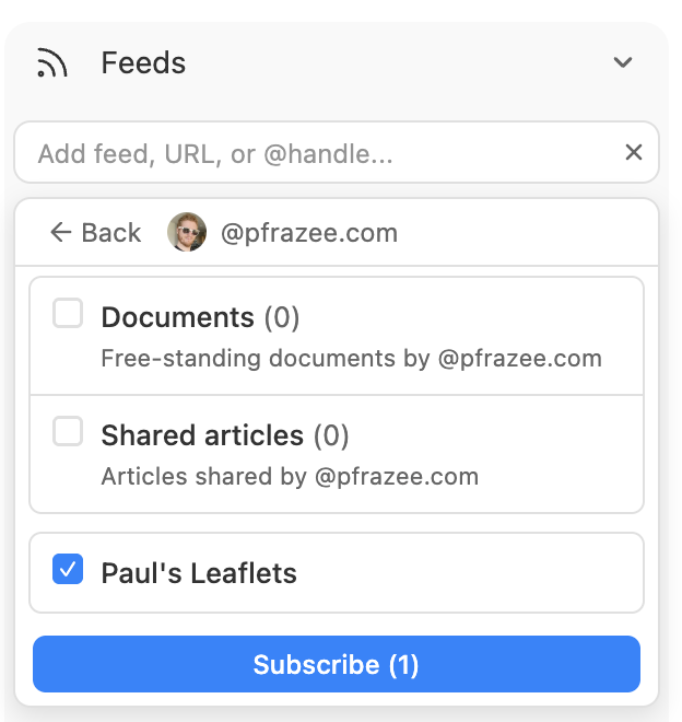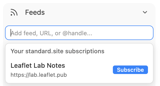 As an added bonus, if you already have standard.site subscriptions from following publications on Leaflet or pckt.blog, you can add them to your feed list in one click.